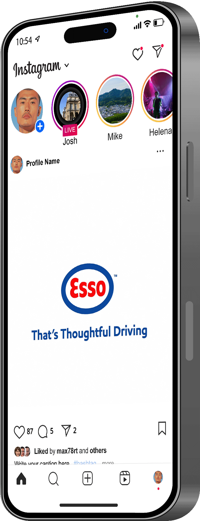 Social first motion ads that translate Esso’s Thoughtful Driving mission into fast, friendly nudges to use less fuel by choosing one journey to skip or do differently. The spots visualise practical habits such as accelerating gently and smarter gear use through kinetic type and icon micro animations.